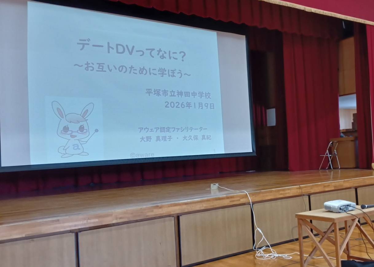 2026年1月9日(金)、神奈川県平塚市立神田中学校の2年生119名の皆さんに、デートDV防止講座を届けてきました。当日はとても寒い日で、冷え切った体育館での講座は参加してくださった皆さんもつらかったことと思いますが、スクリーンを真剣に見...