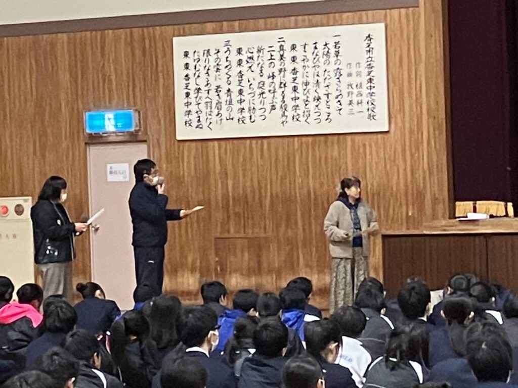 奈良県香芝市立香芝東中学校2年生のみなさんに 届けてきました