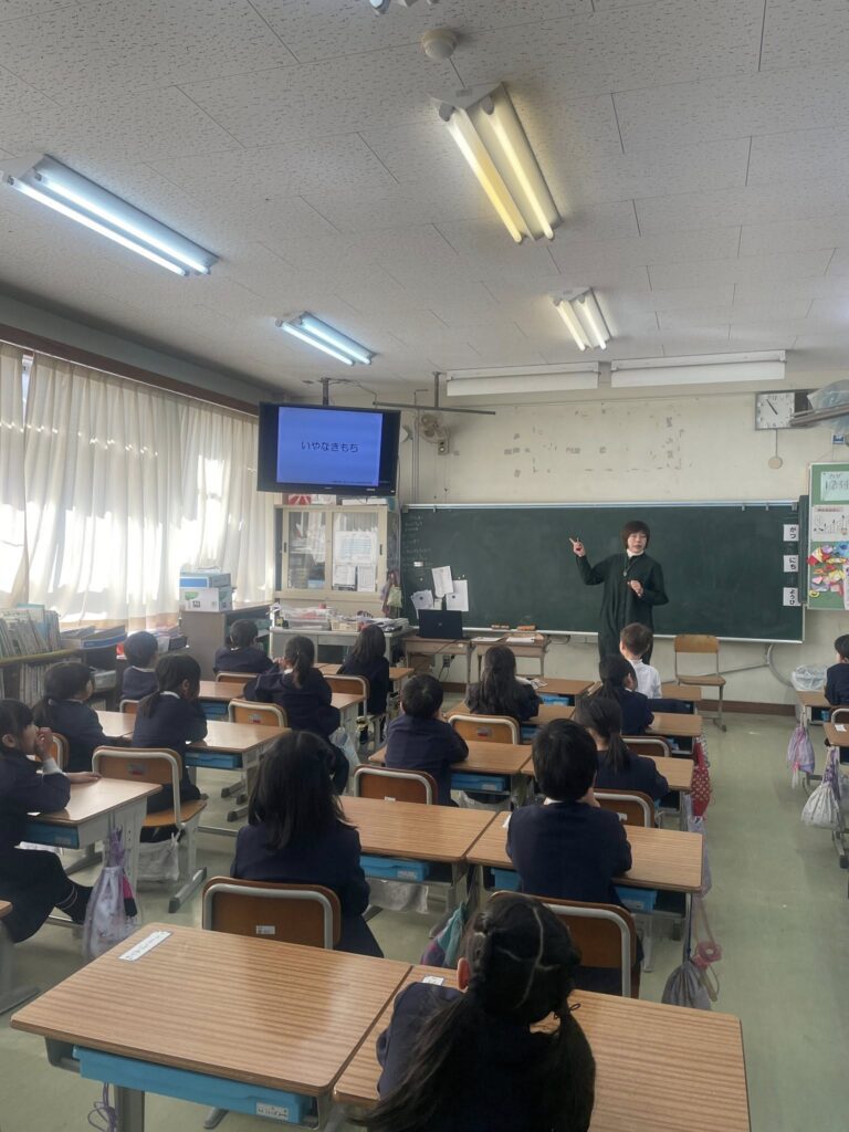 2026.2.19 天理市立山の辺小学校1年生のみなさんに、「生命(いのち)の安全教育講座」を届けました。はじめに校長先生が「1年生のいのちの学習ははじめてなので楽しみです」とご挨拶くださいました。